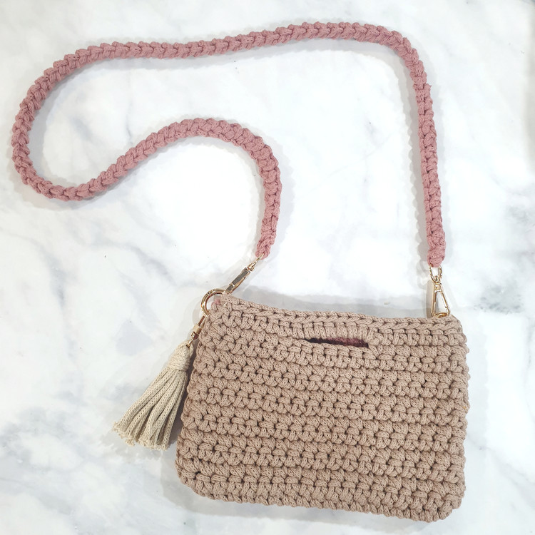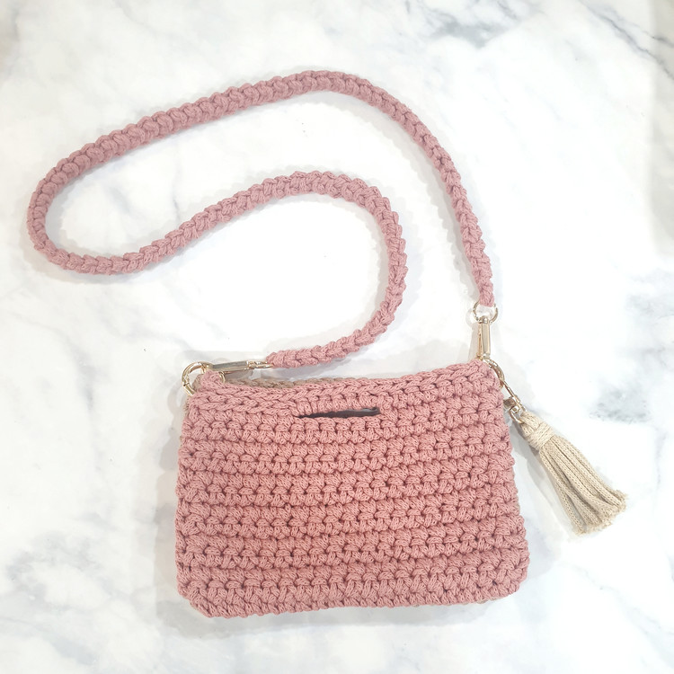 미니백, 손뜨개 투톤 크로스백이에요.